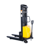 - The semi-electric stacker likely has an electric lifting mechanism for efficient vertical movement